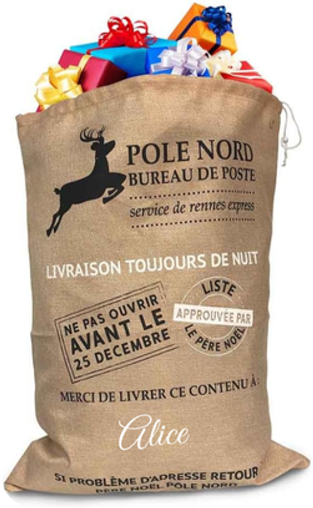 Idéale pour votre décoration de Noël, ce sac vous plongera instantanément dans l'ambiance festive du Père Noël, ajoutant une touche de décoration parfaite sous votre sapin.
