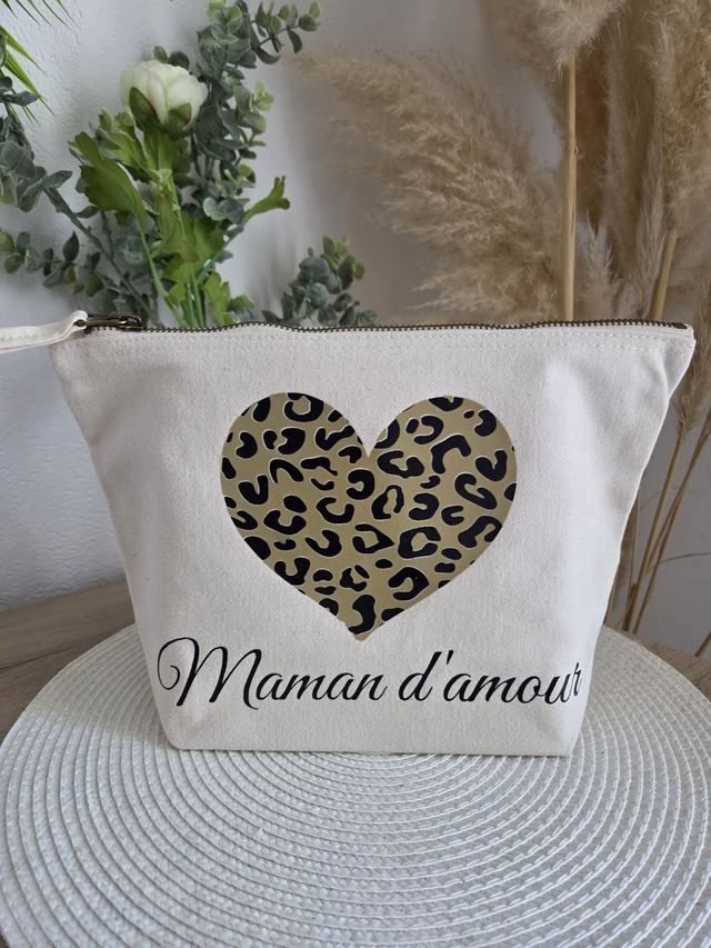 Pochette en coton zippée : trousse "maman d'amour - léopard"
